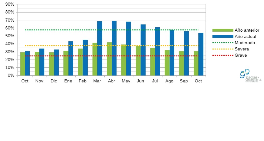 Técnicamente, el sistema se encuentra en situación de escasez moderada. De mantenerse estas circunstancias, la comisión de sequía podría declarar oficialmente dicha situación.